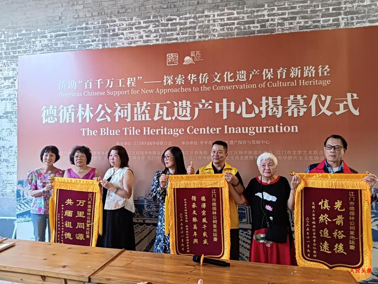 人民头条讯:11月9日,海内外数百嘉宾、乡亲齐聚江门市丹灶村,共同见证侨助“百千万工程”——德循林公祠蓝瓦遗产中心开放日暨德循林公祠重光入伙典礼隆重举行,同期揭幕的“蓝瓦遗产中心”、江门市“侨胞之家” 等同时正式投入运营。这座由南洋华侨林紫昭先生于1935年兴建、一度颓败的侨建家族祠堂,在林氏家族后裔与开平市仓东文化遗产保育与发展中心联手进行修缮、保护和发展下重焕新生,并荣获2024年度由香港文物保护师学会评选的“文化遗产修复大奖”,这也标志着侨乡江门地区的文化遗产保育与活化利用进入新阶段。是次庆典由江门市侨联指导,开平市仓东文化遗产保育与发展中心承办。活动当日,来自美国、法国、新加坡、英国等国家的林德循先生后人35人荣归故里,与本地政府代表、来自粤港澳三地的专家学者、高校师生及社区居民数百人齐聚一堂,共同见证这一重要时刻。