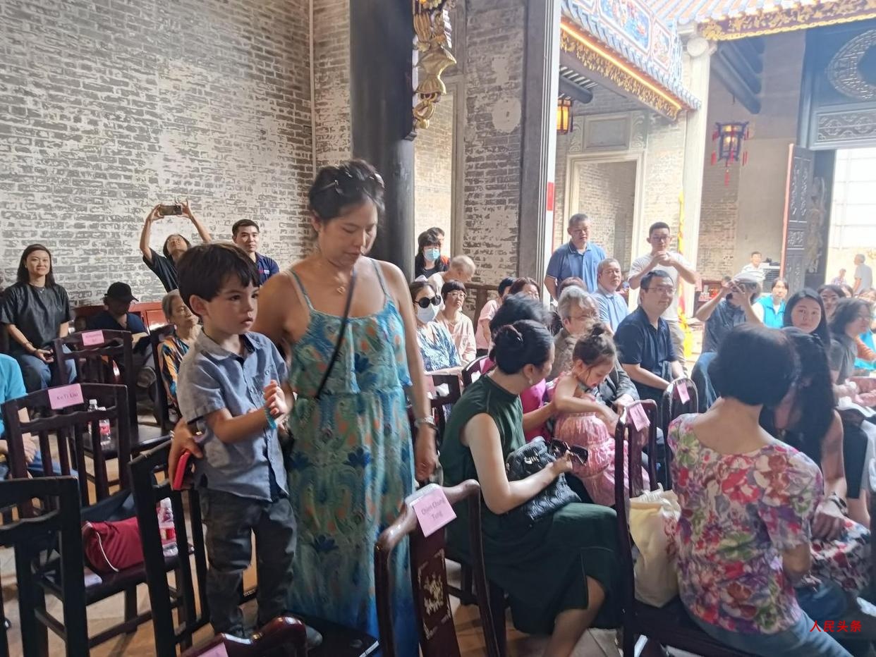 图为海内外嘉宾在百年古祠里面欣赏粤剧表演