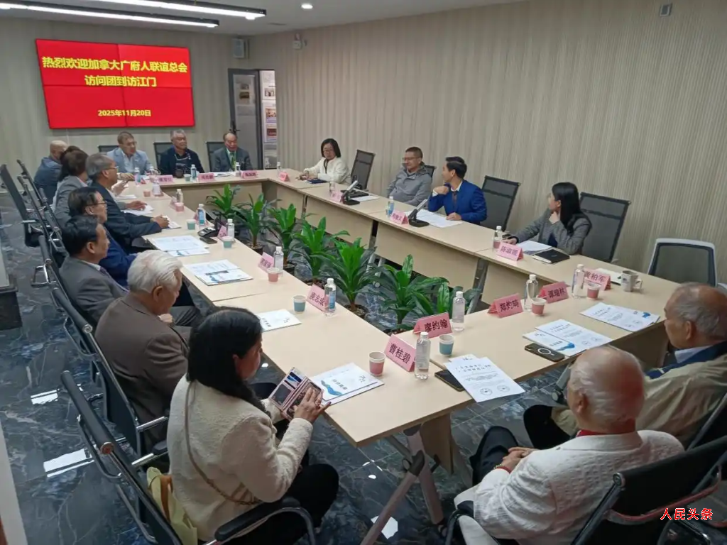 人民头条讯:11月20日,加拿大广府人联谊总会代表团一行93人在加拿大广府人联谊总会创会会长、加拿大广东社团总会执行会长马威廉先生带领下到访江门。当天下午,代表团14名侨领代表专程拜访江门市侨联,江门市侨联主席林春晖、副主席利俊义、江门市投资促进局副局长刘剑等与来访侨领济济一堂共话乡情。