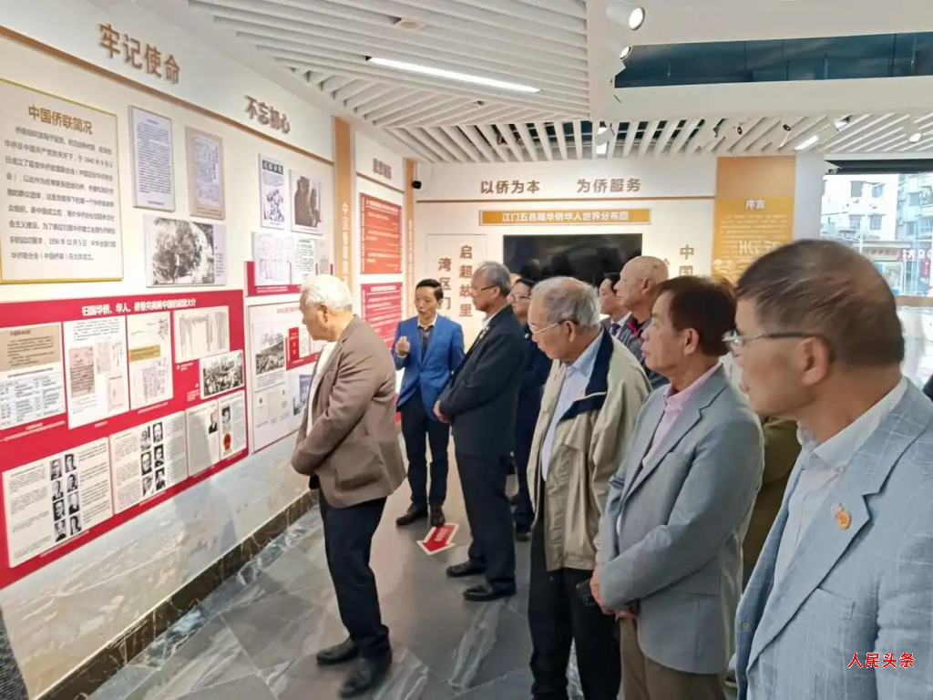 图为加拿大侨领代表参观江门市侨联专题展