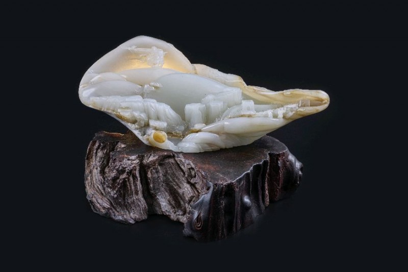 这也正是为什么,袁嘉骐的很多作品会保留原石外皮、天然山形、洞穴感和透光性。那不是偷懒,恰恰是更高级的克制。真正见过大山大水的人,知道不是每一寸都要说话;真正懂玉的人,也知道不是每一处都要下刀。最好的创作,往往是在“天成”与“人作”之间找到最精妙的平衡。