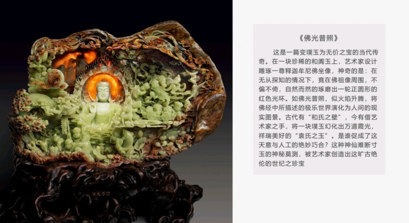 若说《武当朝圣图》是“石中立山”,那么《佛光普照》便是“玉中见光”。