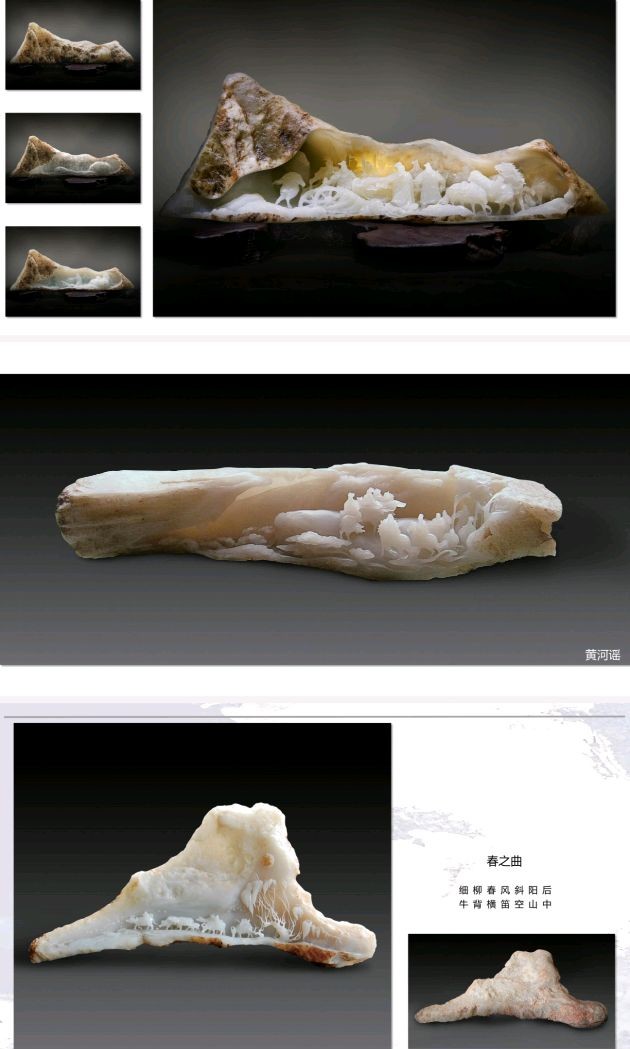 文稿中对他艺术风格的概括很准确:大作气势恢宏,刀斧酣畅,突破一般玉雕面面俱到的章法,巧妙突显原石之美,以局部精雕构成整体诗画意境;小品则构思精巧、隽秀飘逸,突出艺术灵性。
