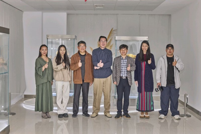 (左起:国际艺术经理人袁珅、作家洪斌、中国工艺美术大师袁嘉骐、书法家胡茂伟、莾莽青联主席洪紫千、舞动身心整合导师王晶)