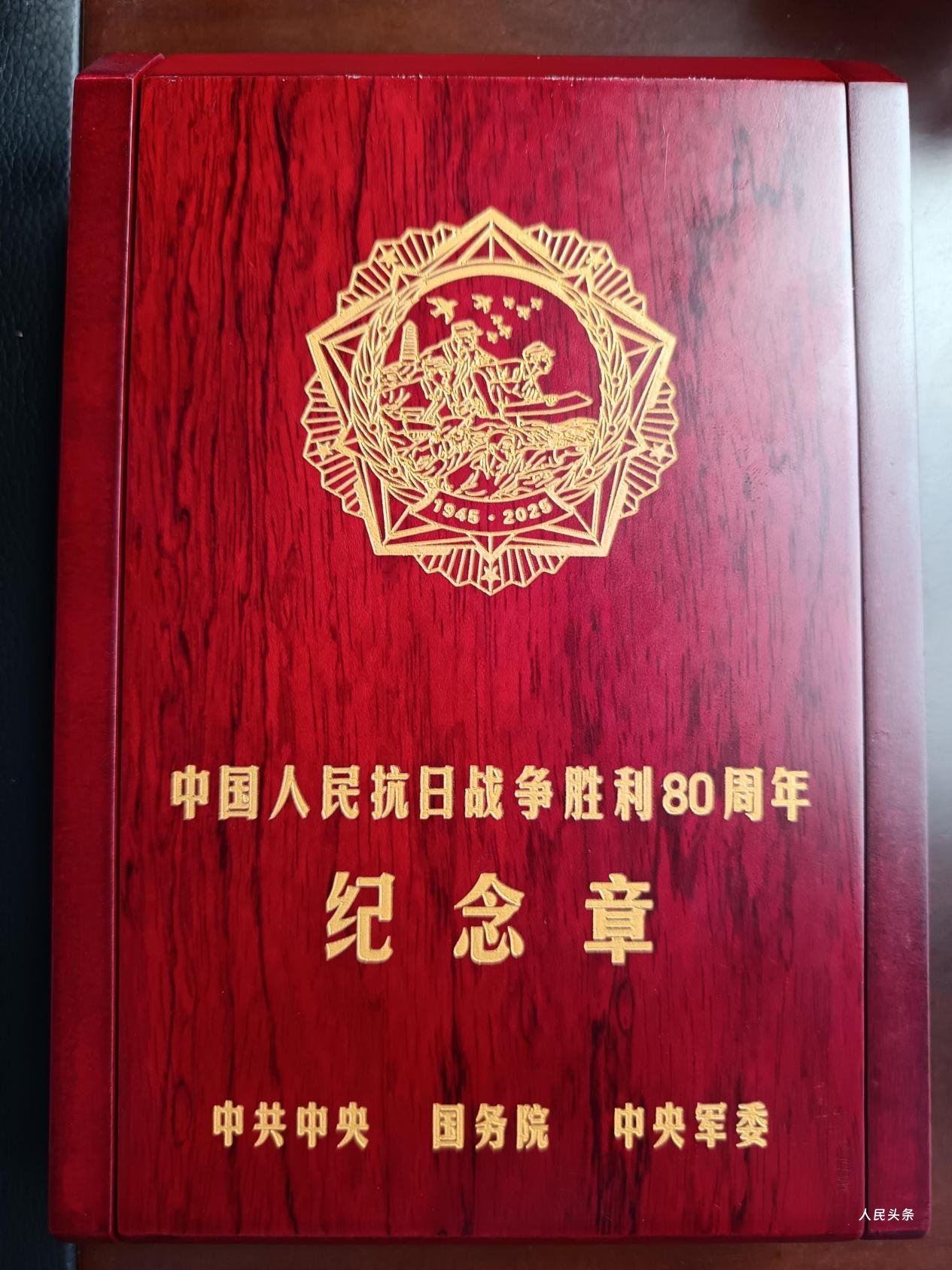 图为中共中央、国务院、中央军委联合颁发的“中国人民抗日战争胜利80周年”纪念章