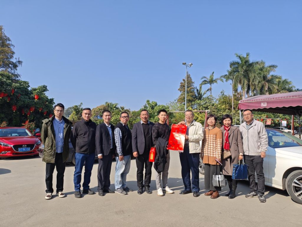 李崴会长(右4)向江门籍湾黄会会员送赠新春祝福