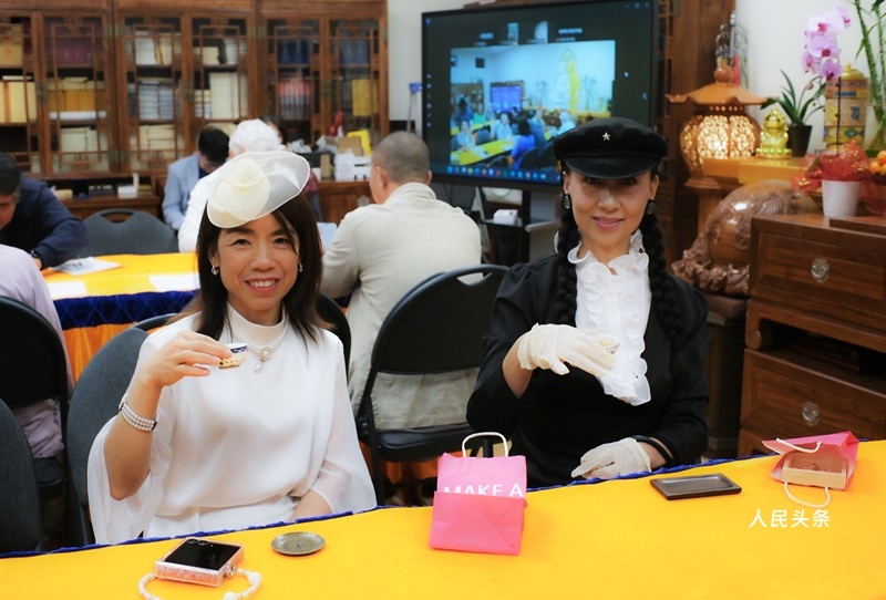 在诵赞之后,海南沉香文化大使庞素心通过视频主持香道仪式。世界华文大众传播媒体基金会理事、茶艺师邓岚月则现场沏制沉香茶,茶香如诗般氤氲全场。