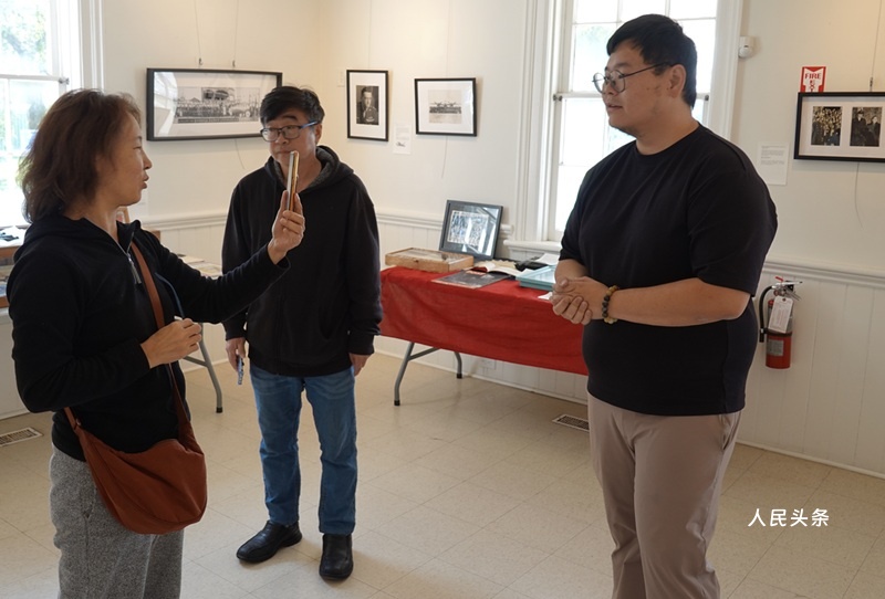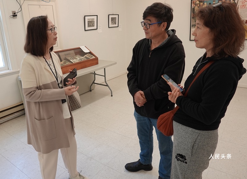 展览现场,《加拿大和世界报道》记者赵品成与《健康生活报道》记者马丽霞,两位故乡均在湖南芷江,特意通过视频连线了远在湖南芷江的受降纪念馆馆长吴建宏。