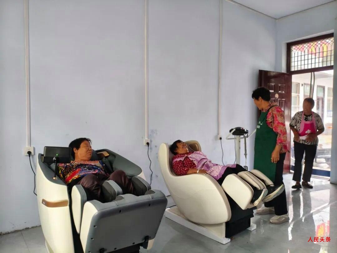 聊起现在变化,她指着村委会院里的日间照料中心,里面两台全自动按摩椅,“这就是(有名气后)企业捐的。现在俺们每天免费吃饭。搞得可不错。”
